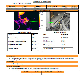 Se refiere a la inspección NDE a través de la adquisición y análisis de la información térmica obtenida mediante una Cámara Infrarroja. La termografía infrarroja es una tecnología del programa de monitoreo de condición con el cual se pueden detectar: